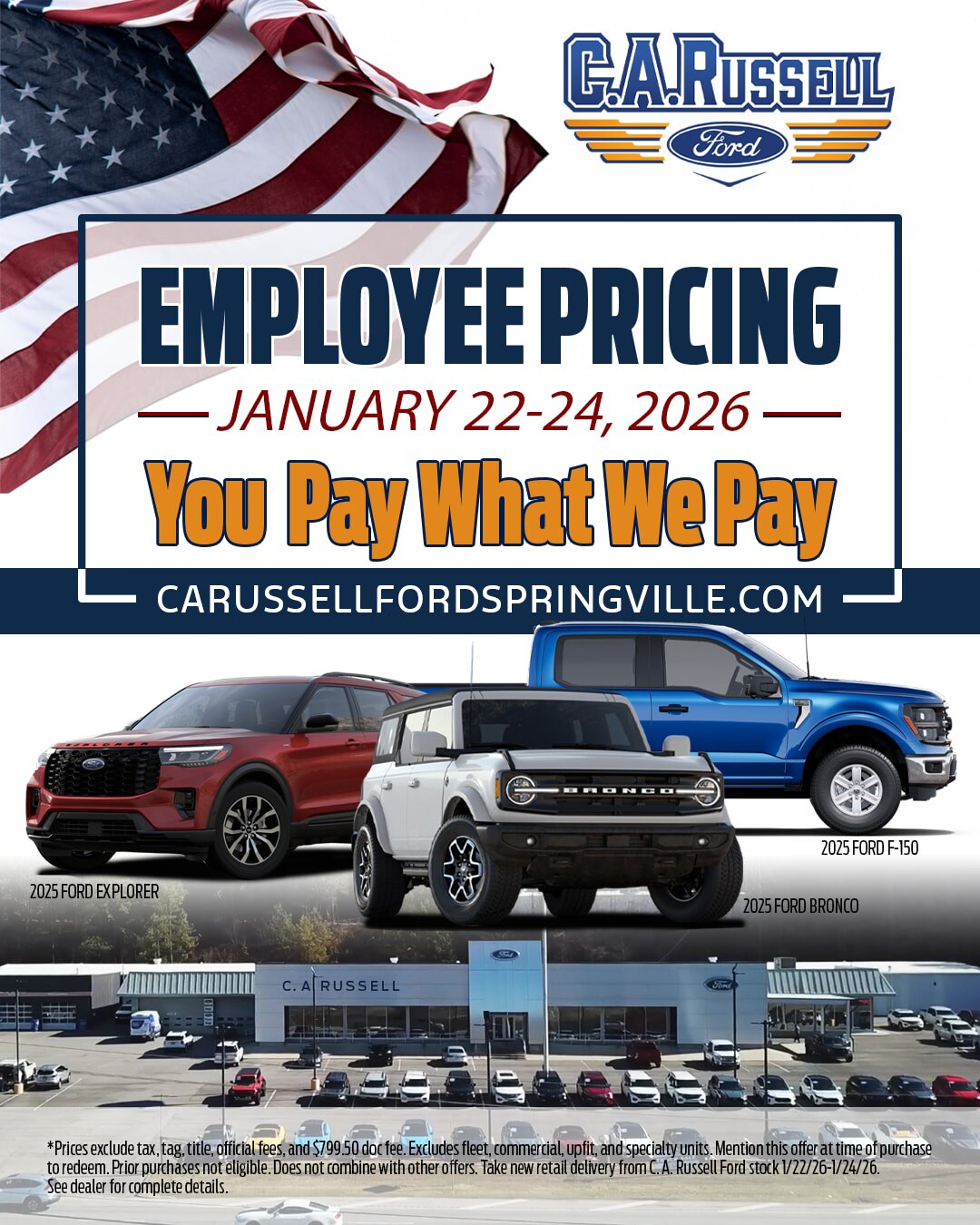 Employee Pricing on new Ford in Springville
